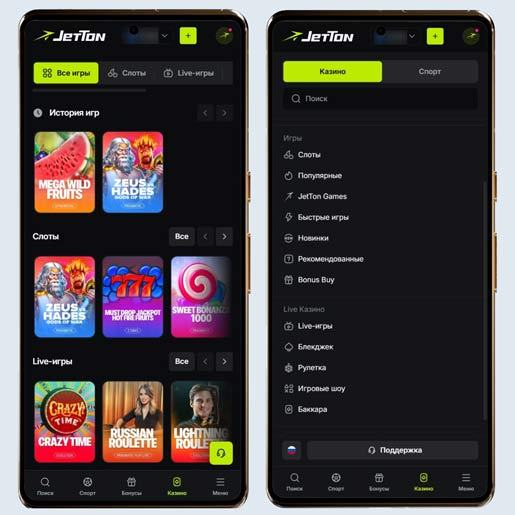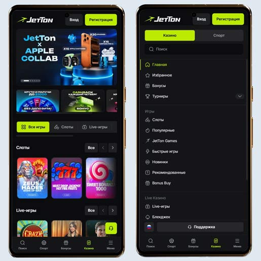 Мобильная версия и приложение казино Джеттон
